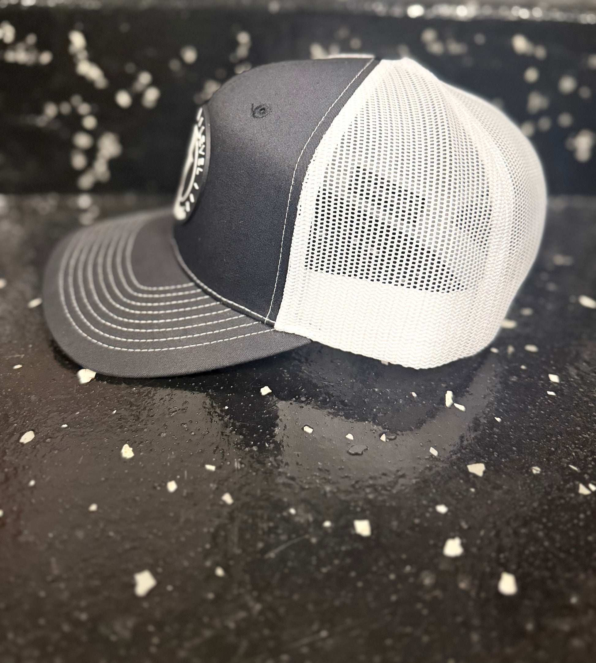 High Level Throwing Trucker Hat w/ Rubber Patch - Black/White